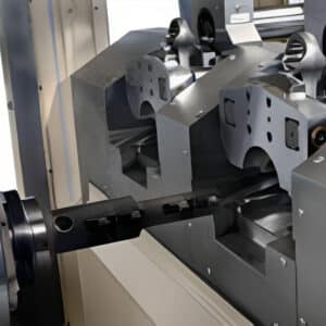 Framtagen för bearbetning av gjutgods och stål. Utrustad med kraftig verktygskoppling HSK80. I övrigt linjära mätskalor och individuella NC-axlar för varje spindel vilket gör det möjligt att köra två olika artiklar samtidigt!